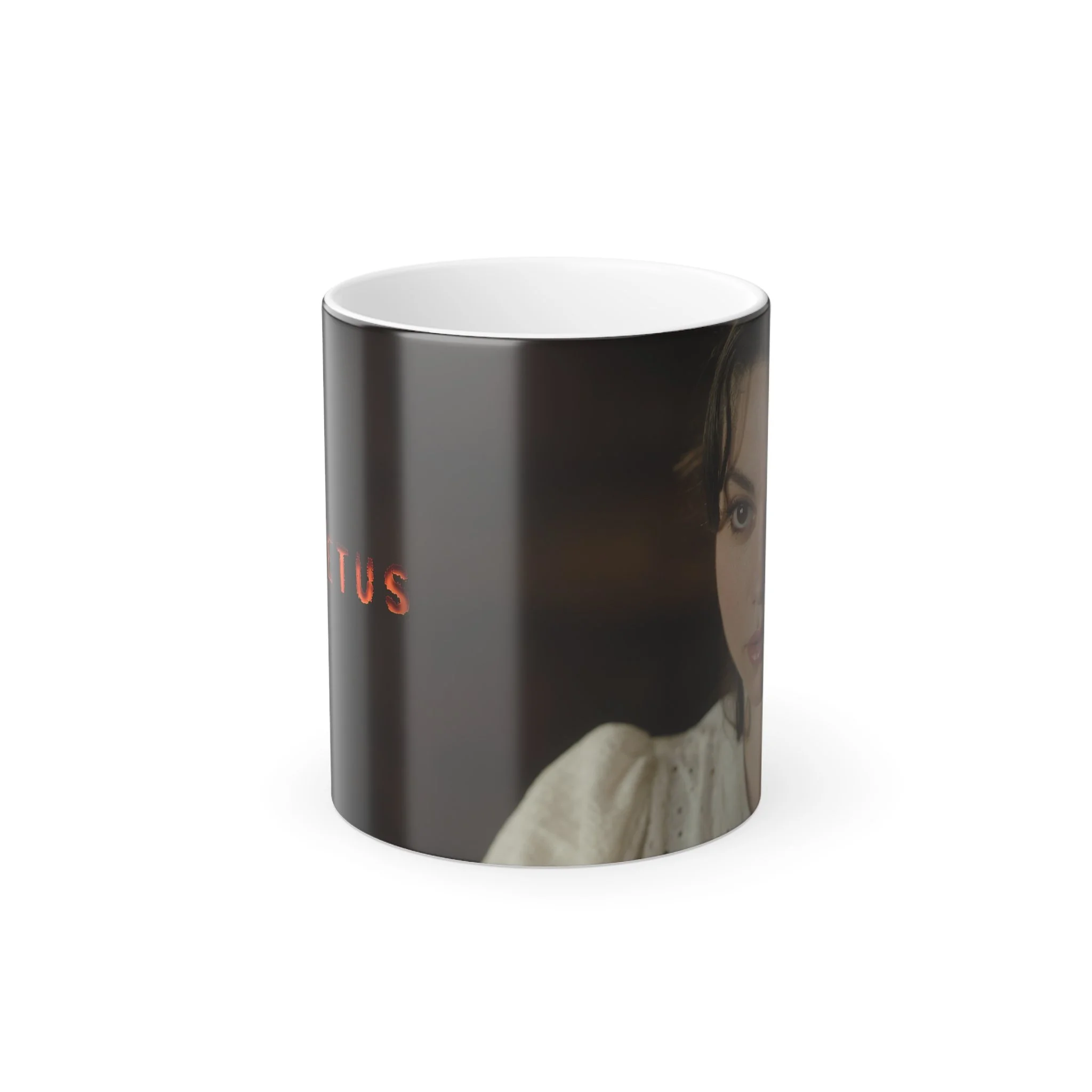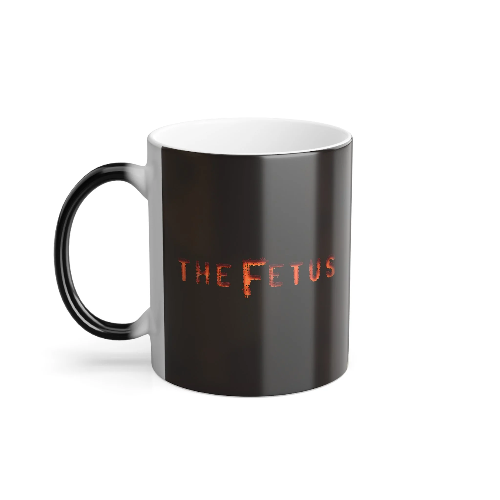 Watch horror unfold with every cup. This heat‑sensitive magic mug features a striking image of Alessa, played by Lauren LaVera in the horror‑comedy film The Fetus. When cold, it appears as a sleek black mug—but add hot liquid, and Alessa’s haunting gaze slowly emerges from the darkness.
